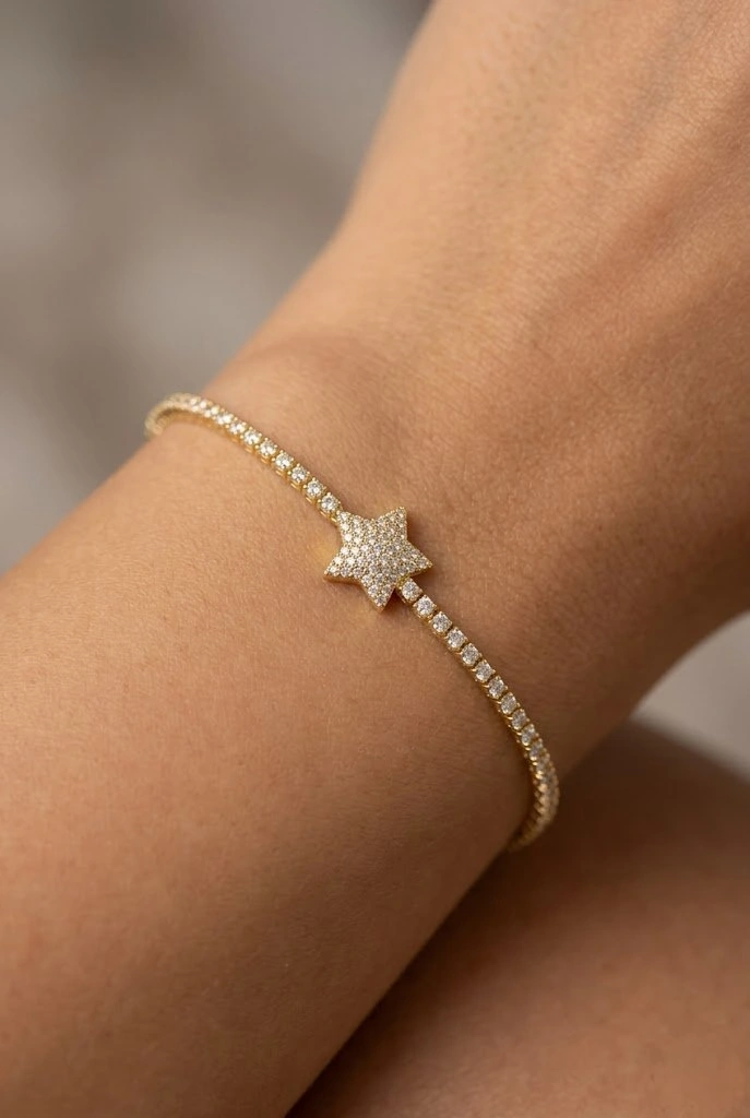 Taşlı Yıldız Model Gold Altın Kaplama Su Yolu Bileklik