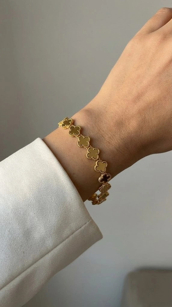 Sıralı Düz Yonca Detay Gold Altın Kaplama Kuyum Bileklik