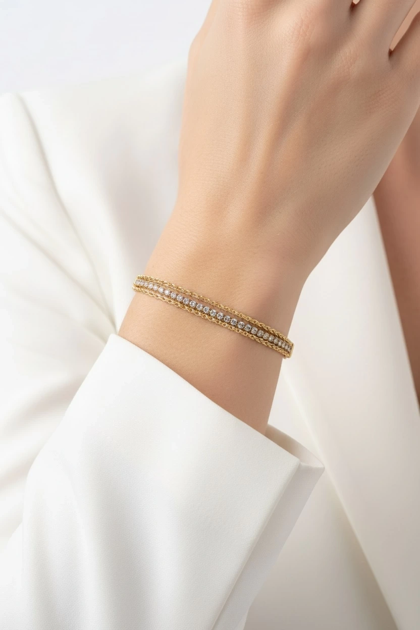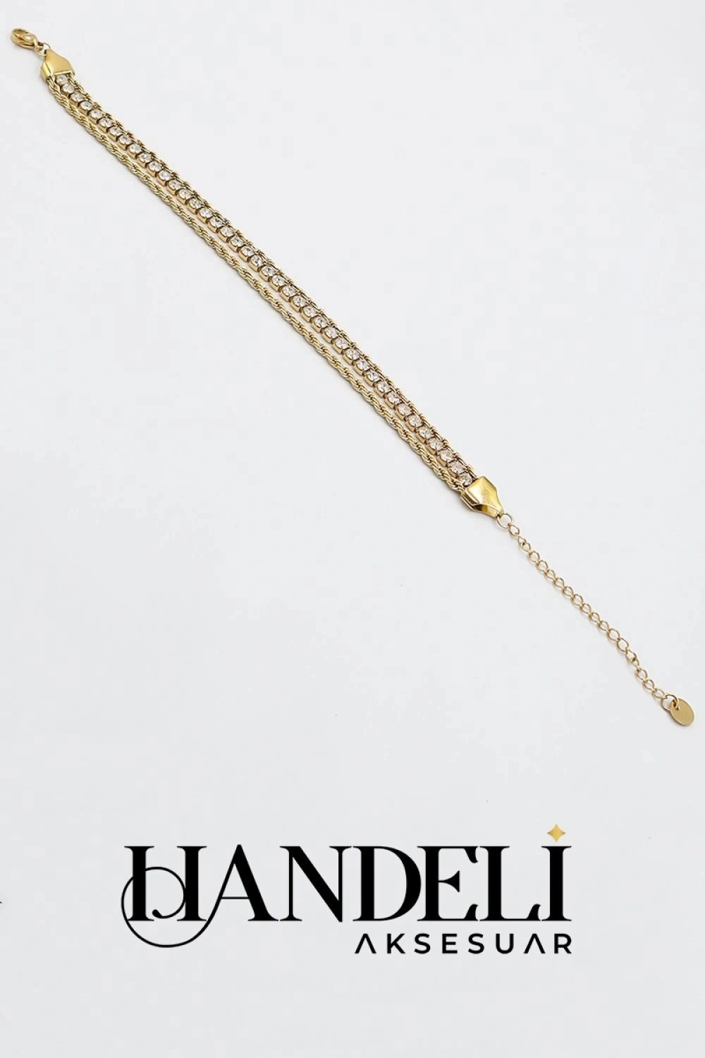 Üç Sıra Burgu Zincir Gold Altın Kaplama Çelik Kelepçe