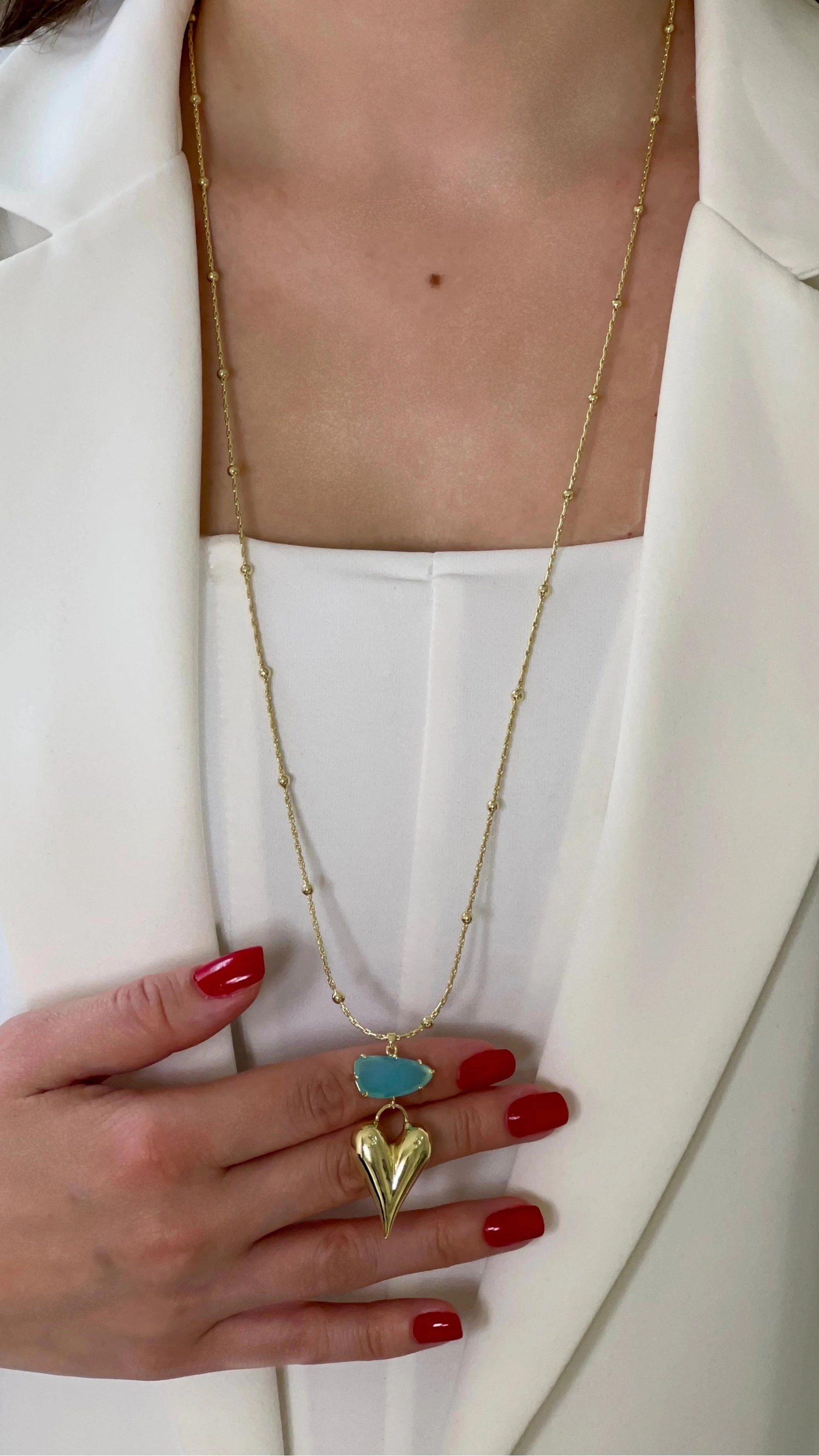 Tombul Kalp Doğal Taş Detay Gold Altın Kaplama Kolye