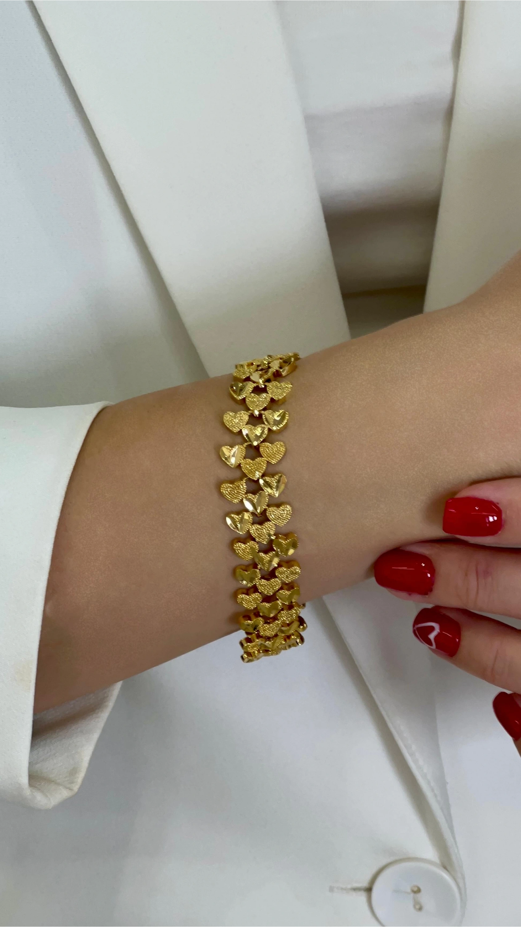 Üç Kalp Kuyum Model Gold Altın Kaplama Bileklik