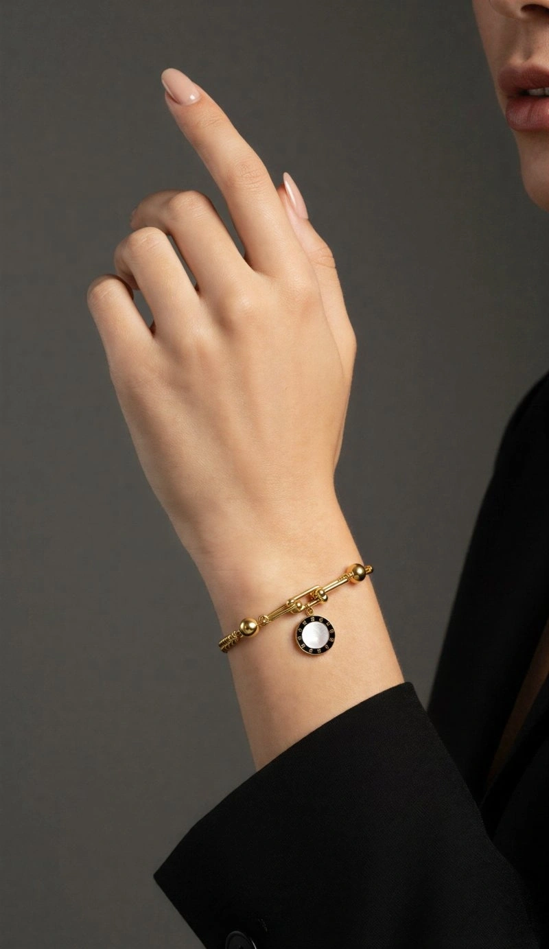 Top Detay Nal Model Sedef Halka Gold Altın Kaplama Bileklik