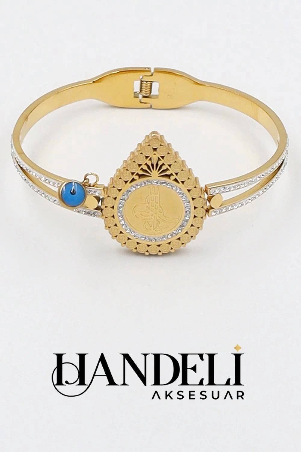 Tuğra Detay Damla Model Gold Altın Kaplama Kelepçe