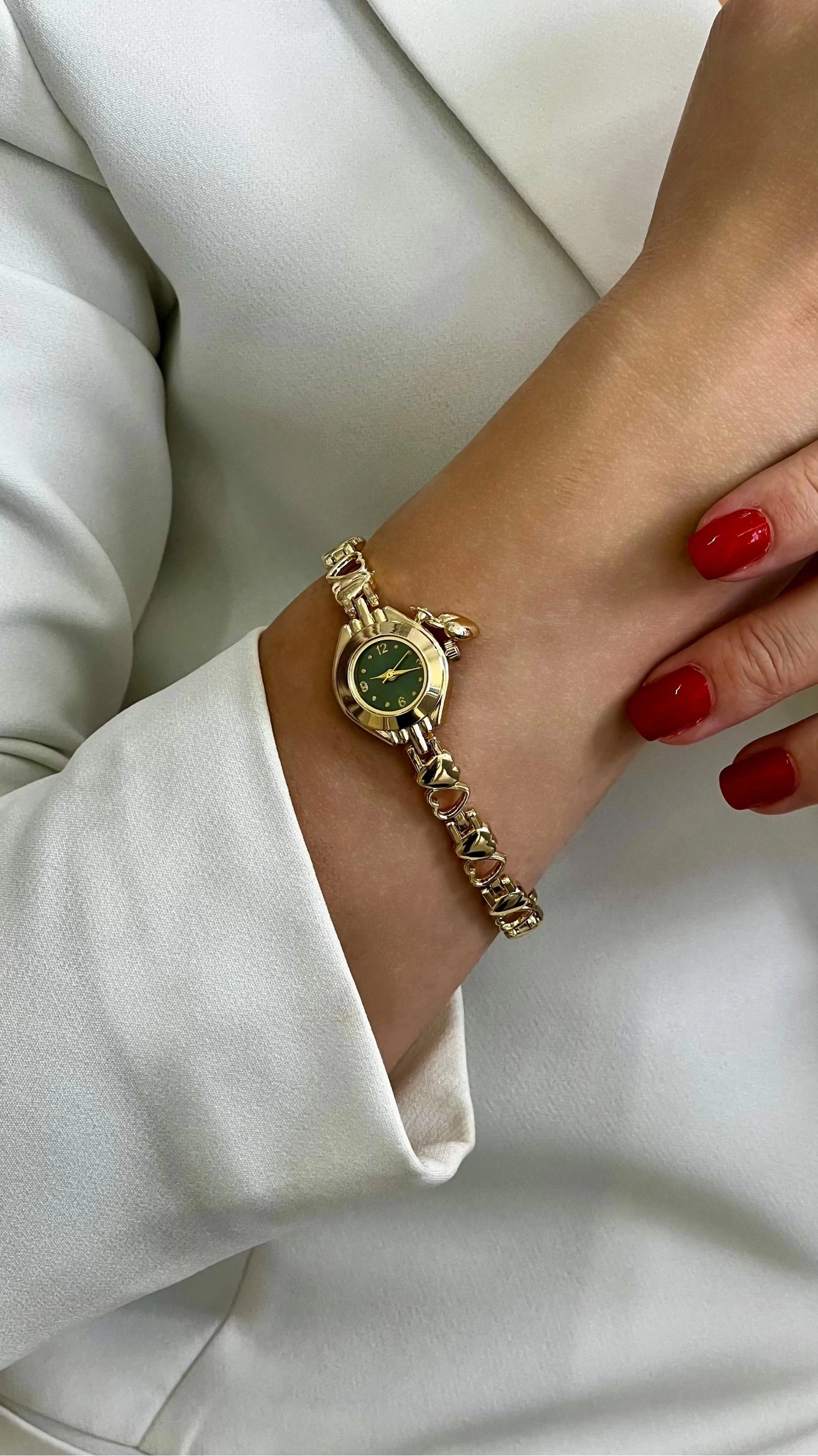 Kalp Kordon Gold İçi Yeşil Kadın Kol Saati