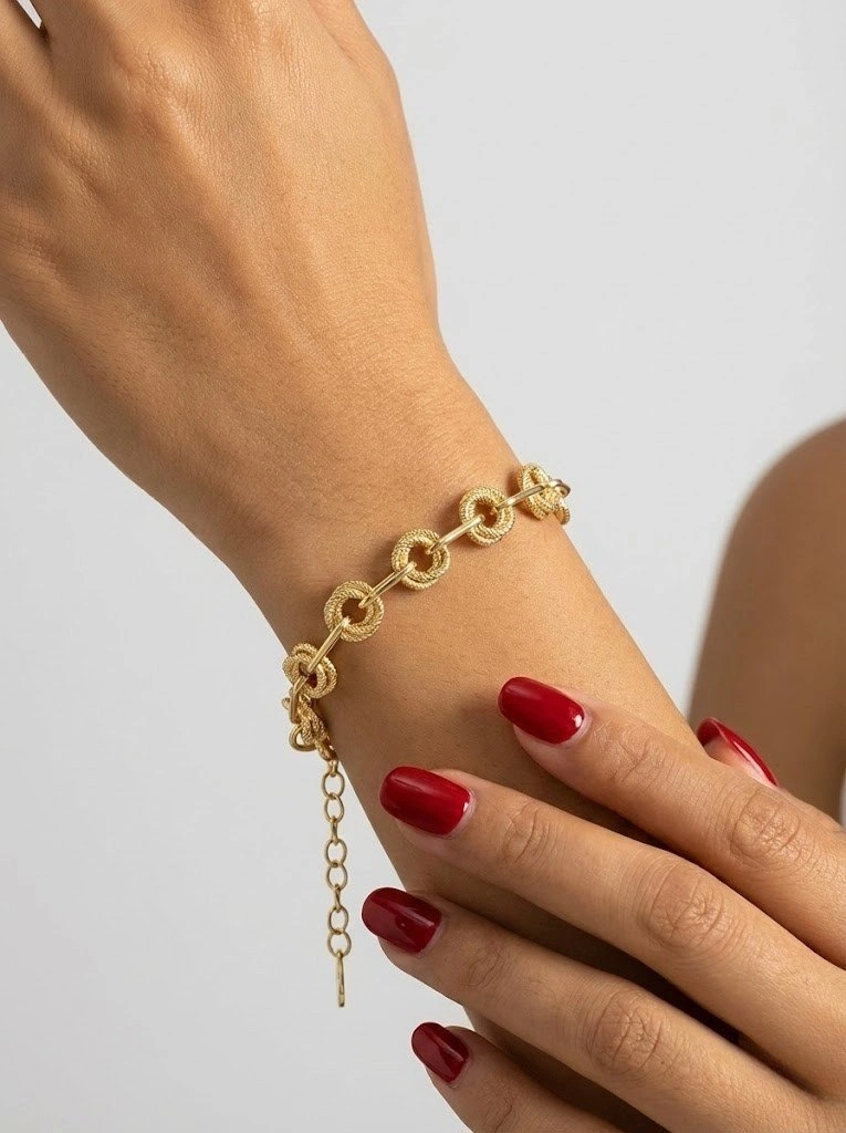 Üç Desenli Halka Geçiş Gold Altın Kaplama Bileklik