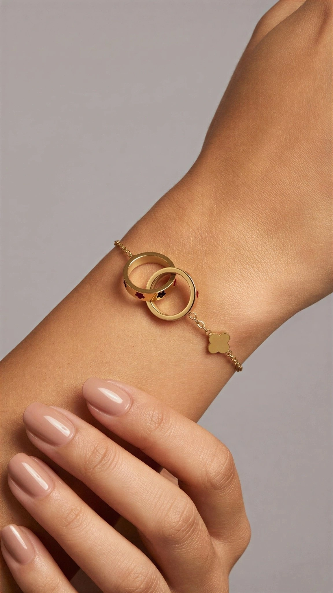 Çift Halka Model Gold Altın Kaplama Çelik Bileklik