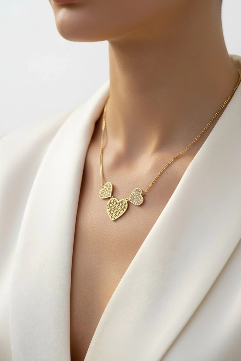Üç Kalp Düz Zincir Gold Altın Kaplama Bileklik