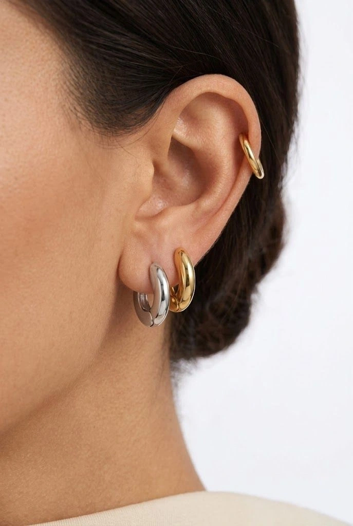 Üç Renk Halka Model Altılı Gold Altın Kaplama Çoklu Küpe