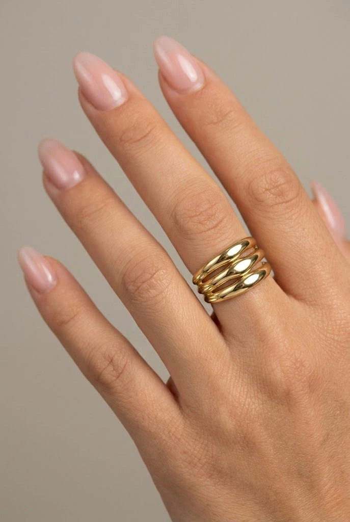 Üç Sıra Model Gold Altın Kaplama Yüzük