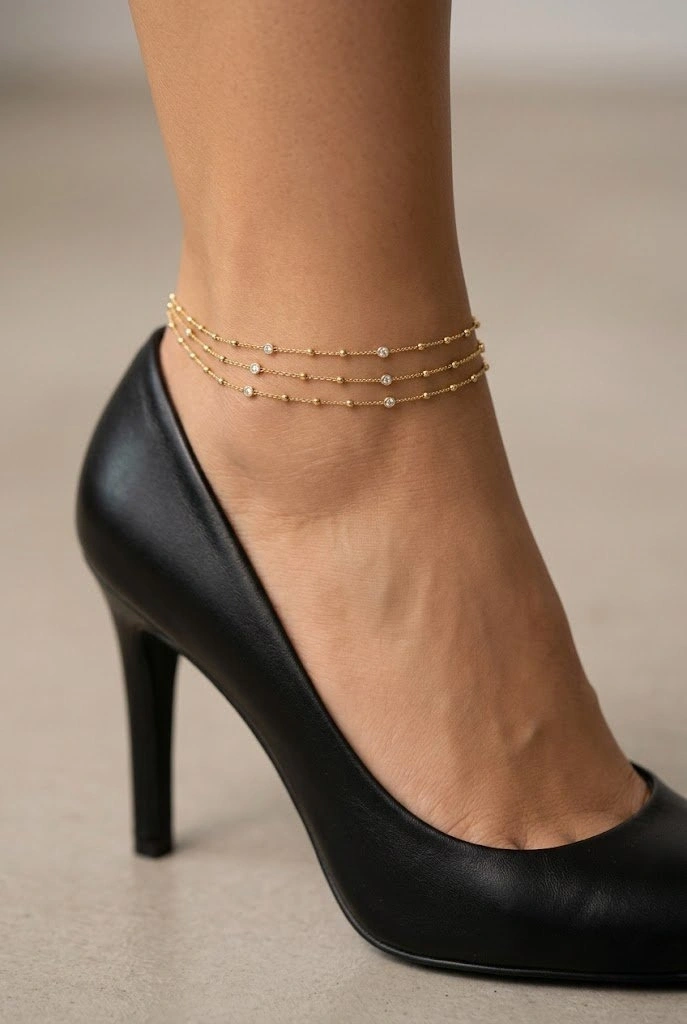 Üç Sıra Taşlı Dorika Model Gold Altın Kaplama Halhal