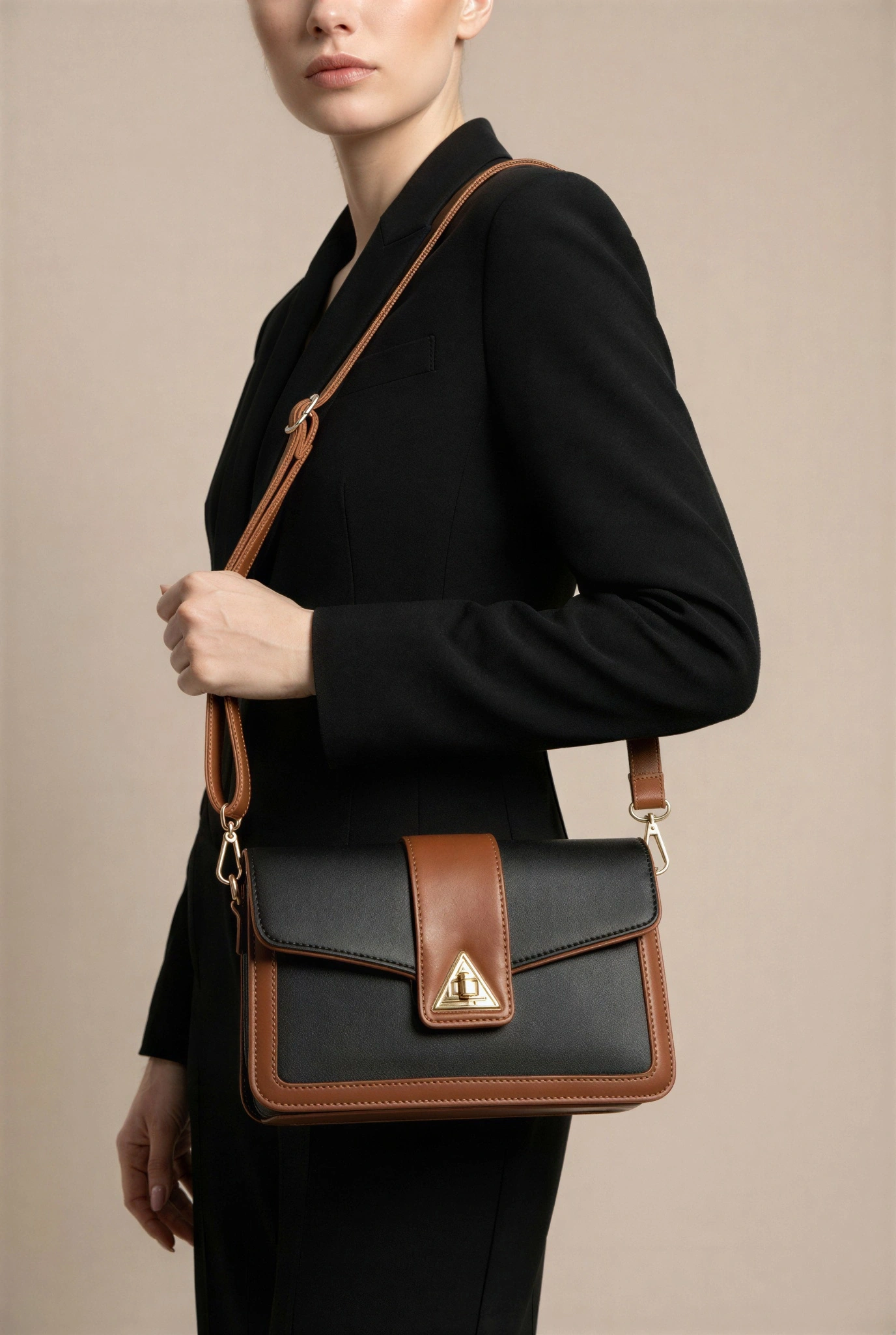 Üçgen Model Siyah Kahve Renk Kadın Çanta