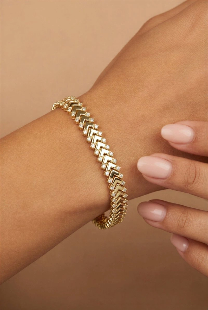 Üçgen Model Taş Detay Gold Altın Kaplama Bileklik