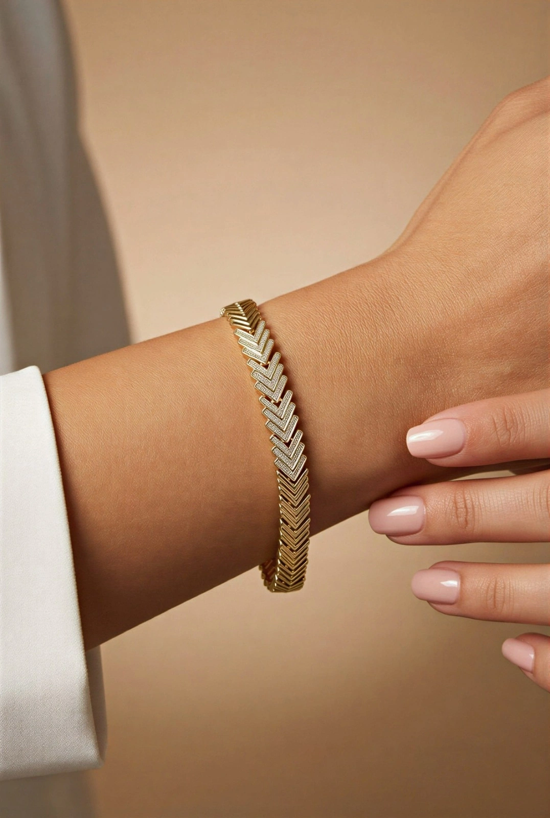 Üçgen Model Taş Detay Gold Altın Kaplama Bileklik, zarif ve şık bir görünüm sunar. Altın kaplama işlemi ile kalitesini ve dayanıklılığını korur. Bu özel bileklik, modern tasarımıyla her kıyafete uyum sağlar. Üstün kaliteli malzemeler kullanılarak üretilmiş olan bu bileklik, kullanıcılarına uzun süreli kullanım imkanı sunar.