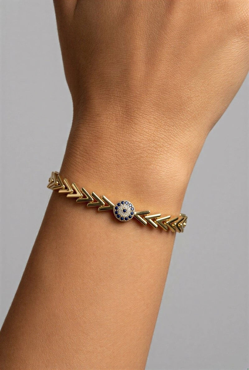 Üçgen Zincir Nazar Boncuğu Model Gold Altın Kaplama Bileklik