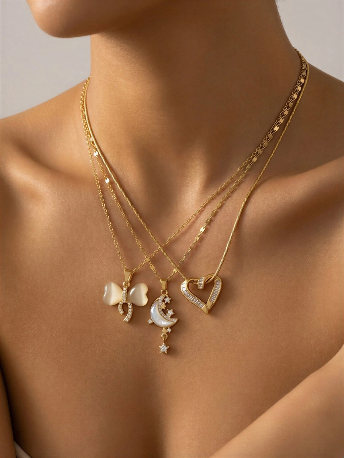 Üçlü Gold Model Kolye Kombin