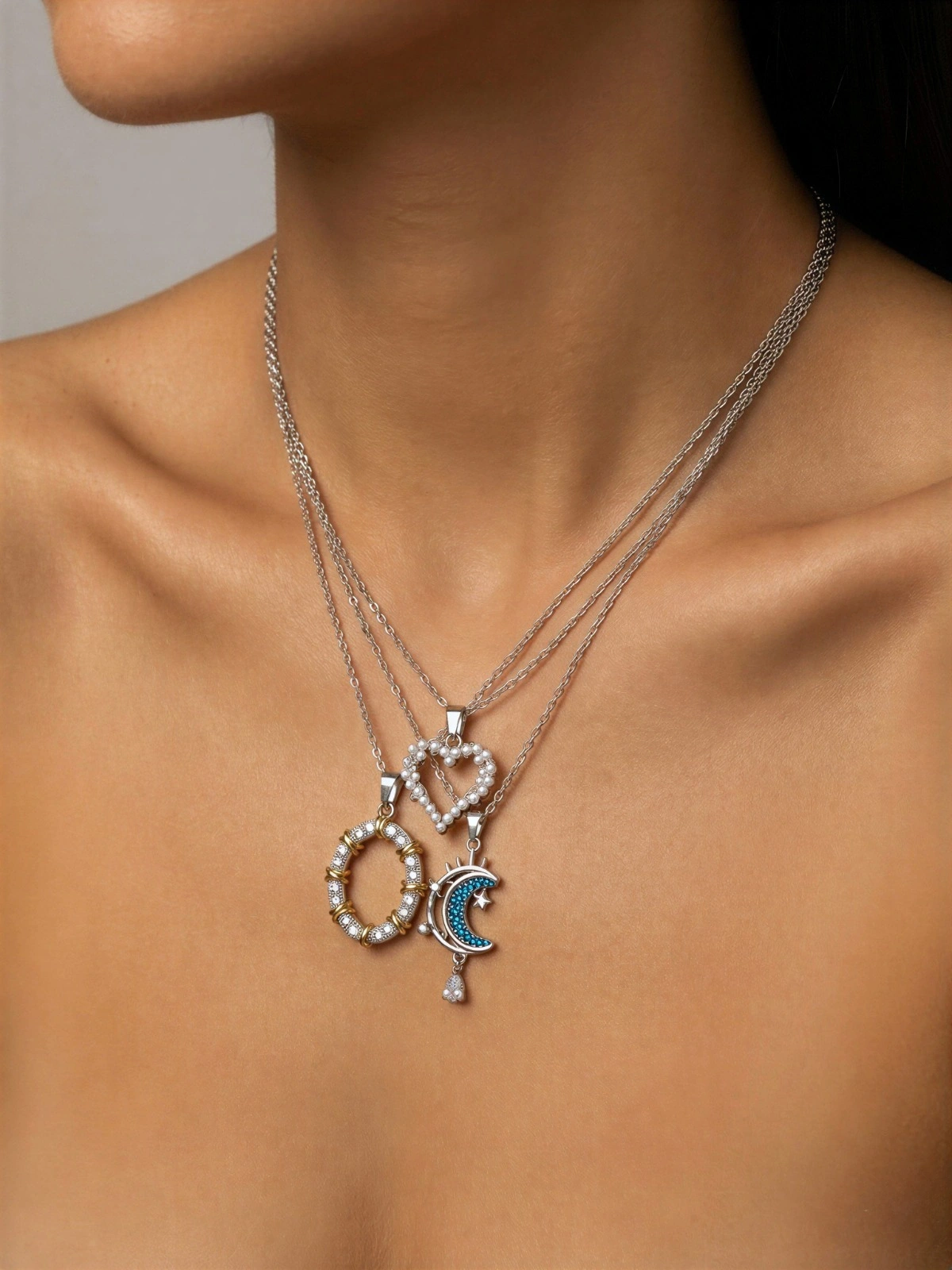 Üçlü İnci Taş Kolye Kombin