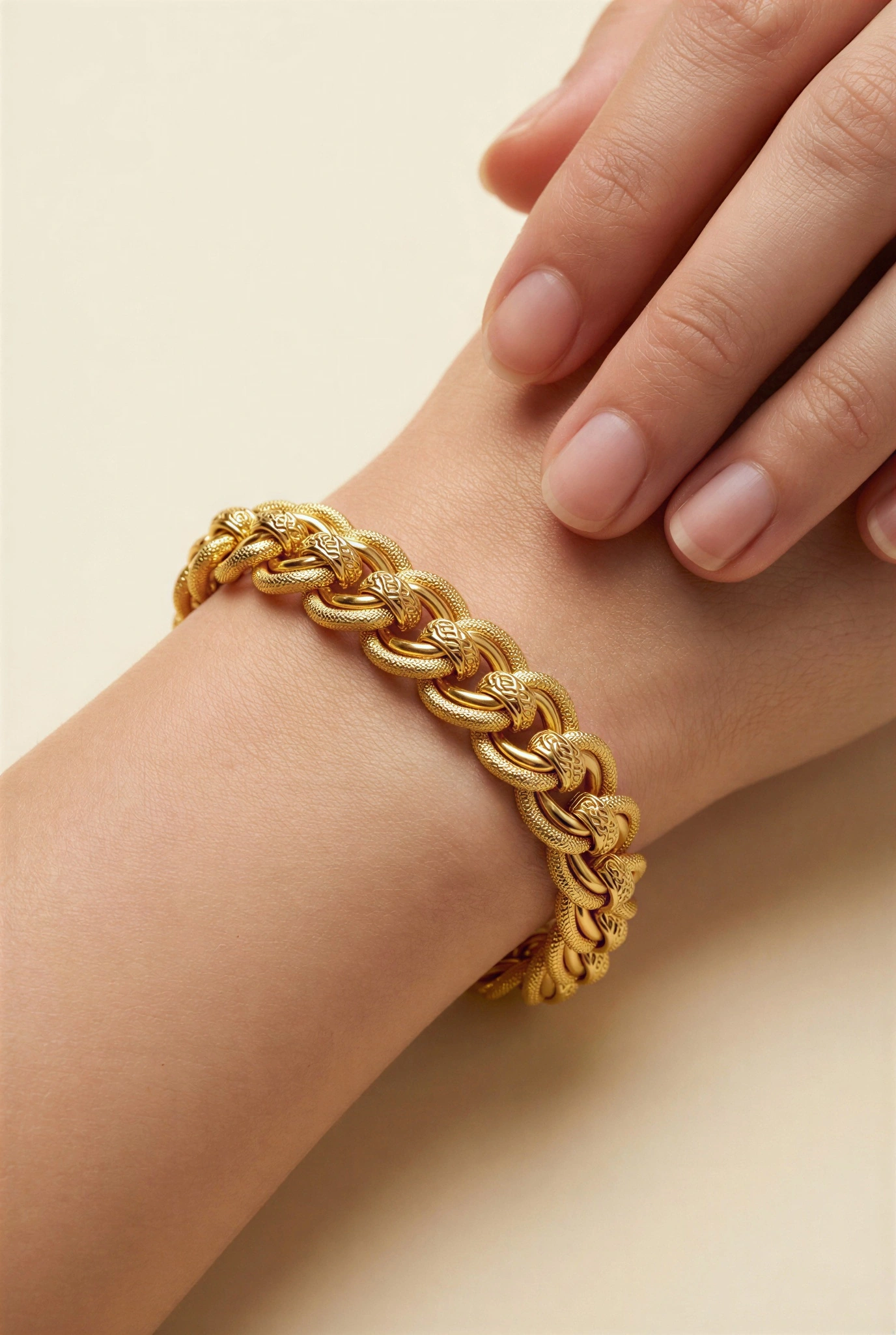 Uzay Yolu Model İç İçe Detay Gold Altın Kaplama Kuyumcu Bileklik