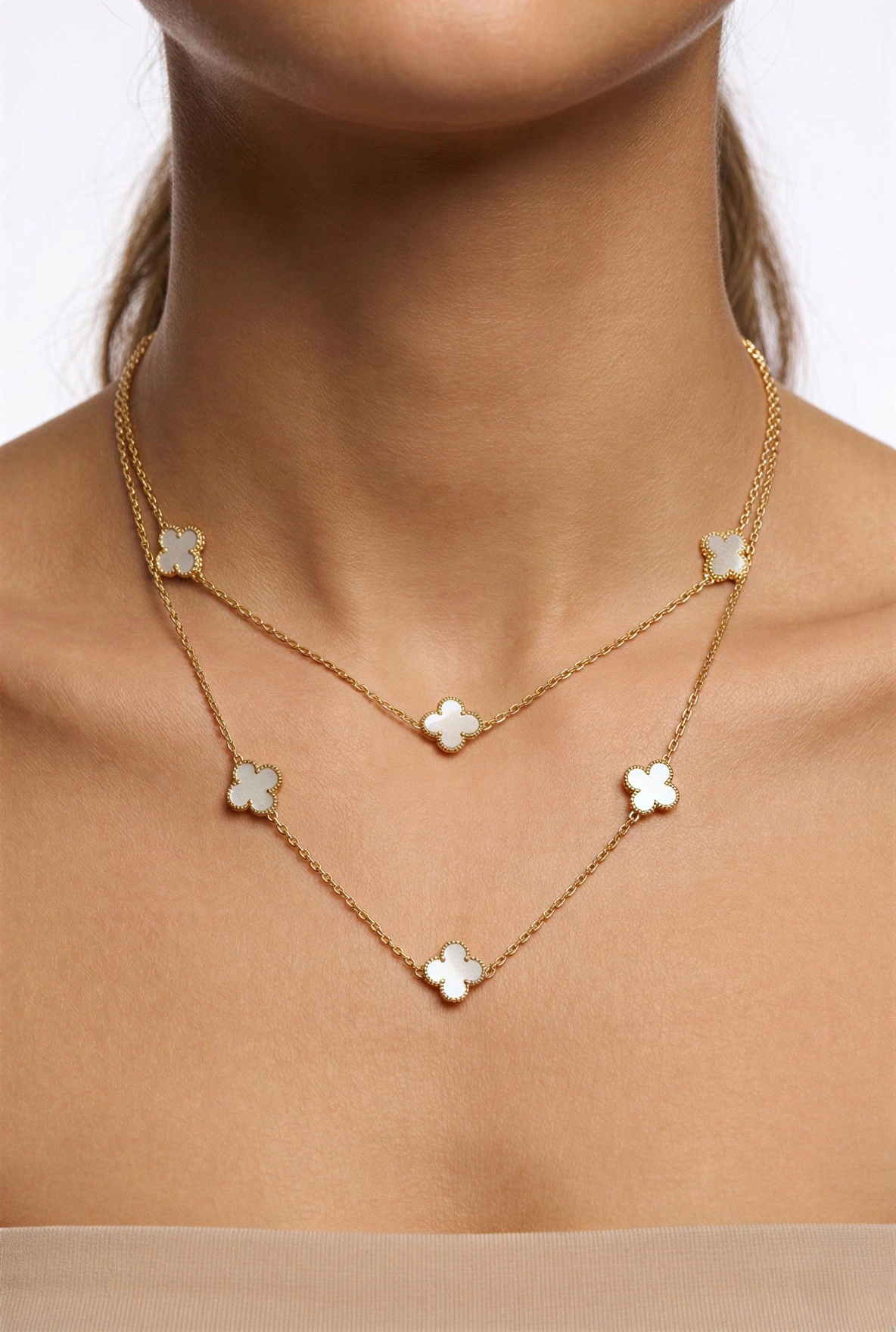 Uzun Beyaz Yonca Detay Gold Altın Kaplama Kolye, şıklığı ve zarafeti bir arada sunar. Bu kolye ile her kombininize zarif bir dokunuş ekleyebilirsiniz.