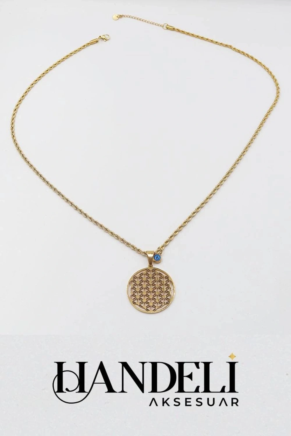 Uzun Burgu Zincir Yaşam Çiçeği Gold Altın Kaplama Çelik Kolye