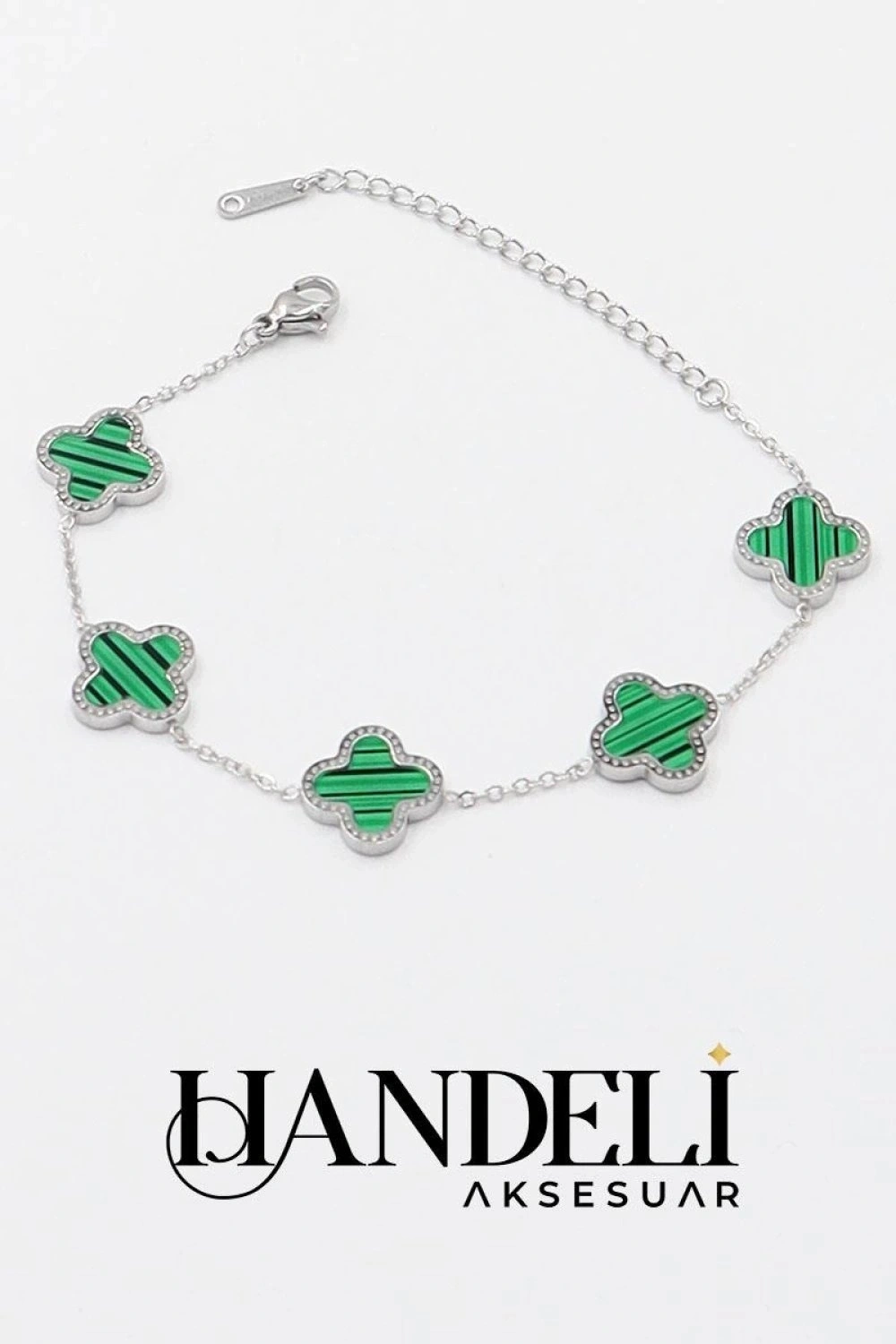 VAC Model Yeşil Sedef Beyaz Altın Kaplama Çelik Bileklik