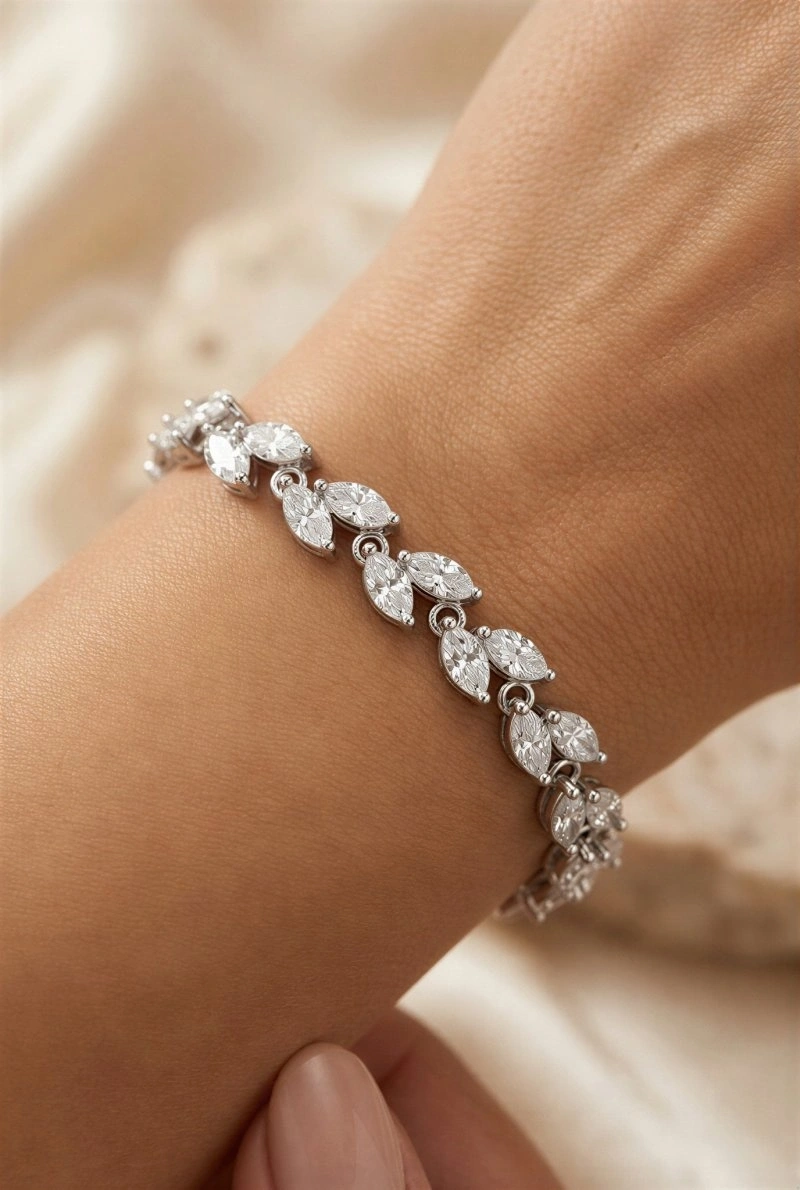 Yaprak Model Beyaz Altın Kaplama Bileklik