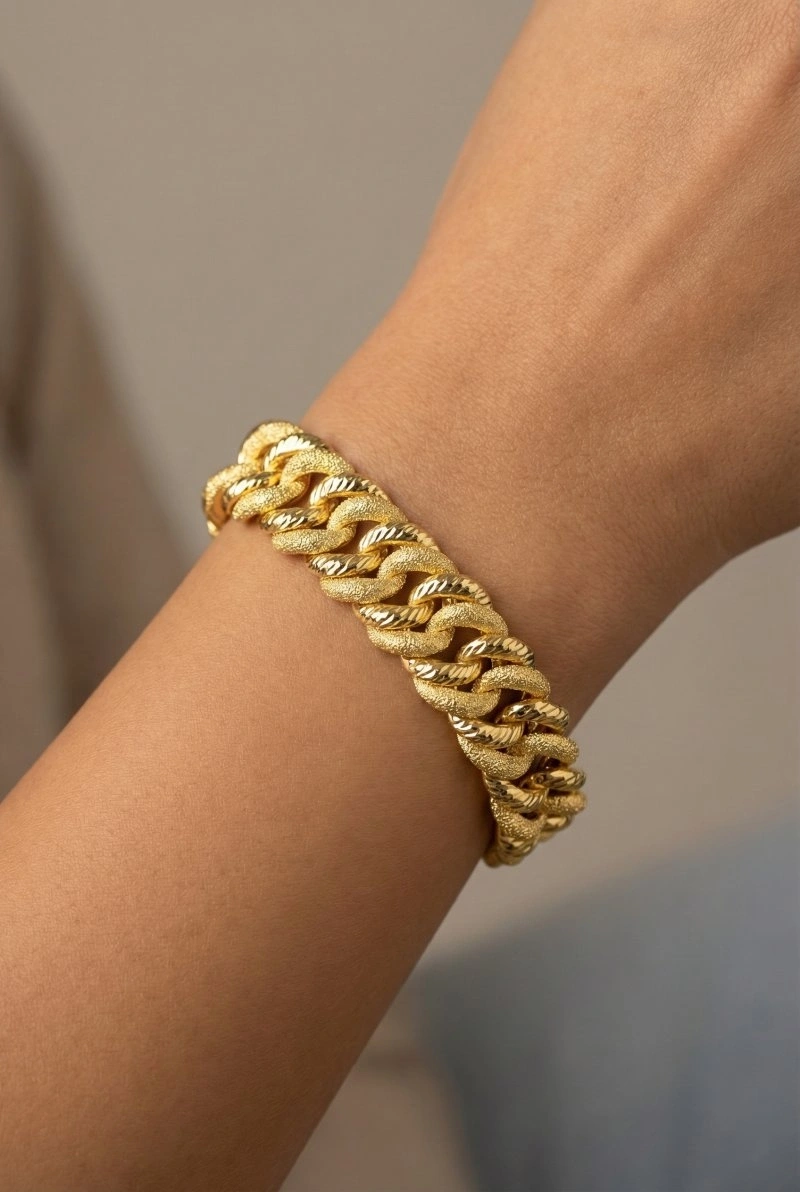 Yarı Simli Yarı Desenli Uzay Yolu Model Gold Altın Kaplama Bileklik