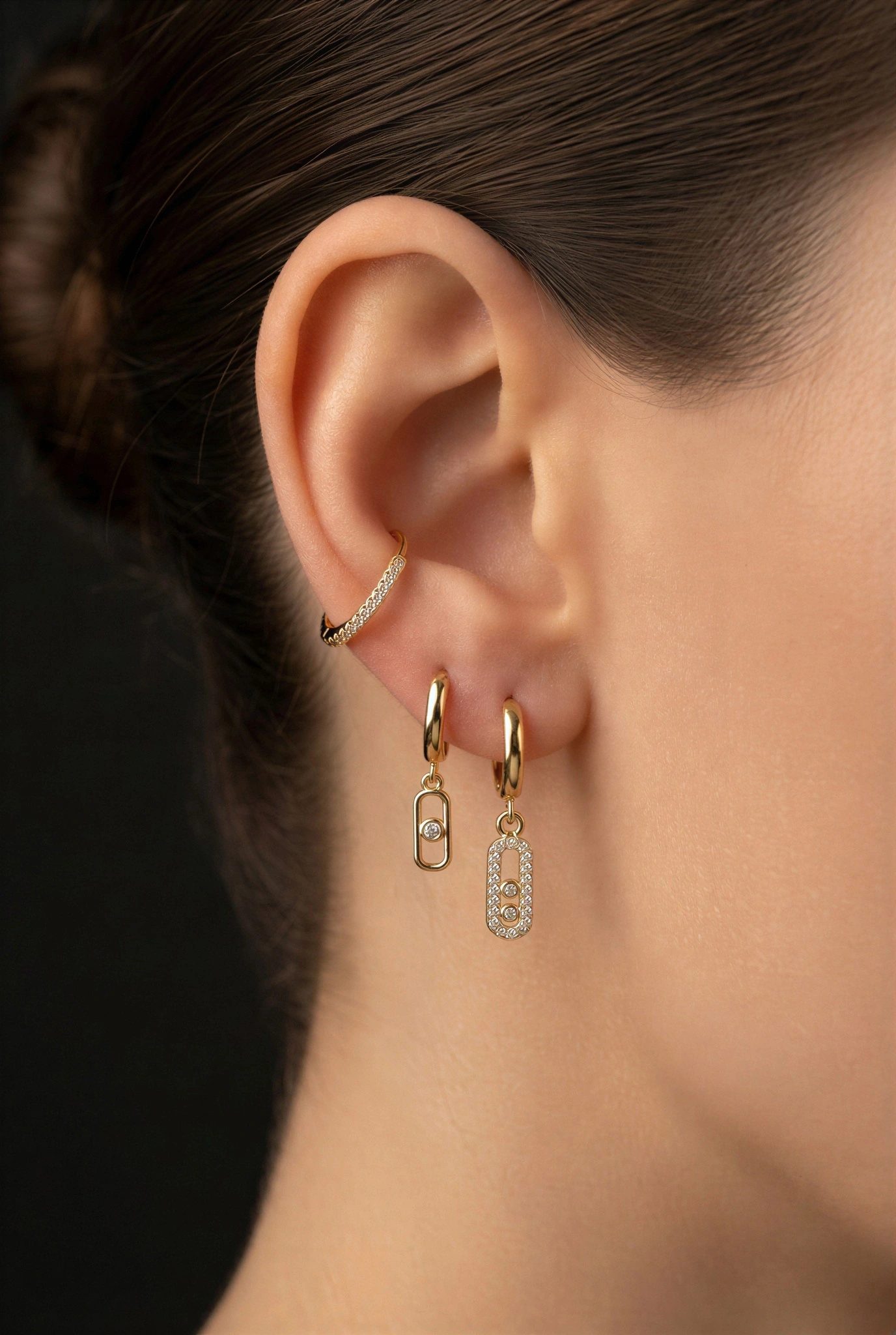 Silindir Model Gold Altın Kaplama Üçlü Küpe