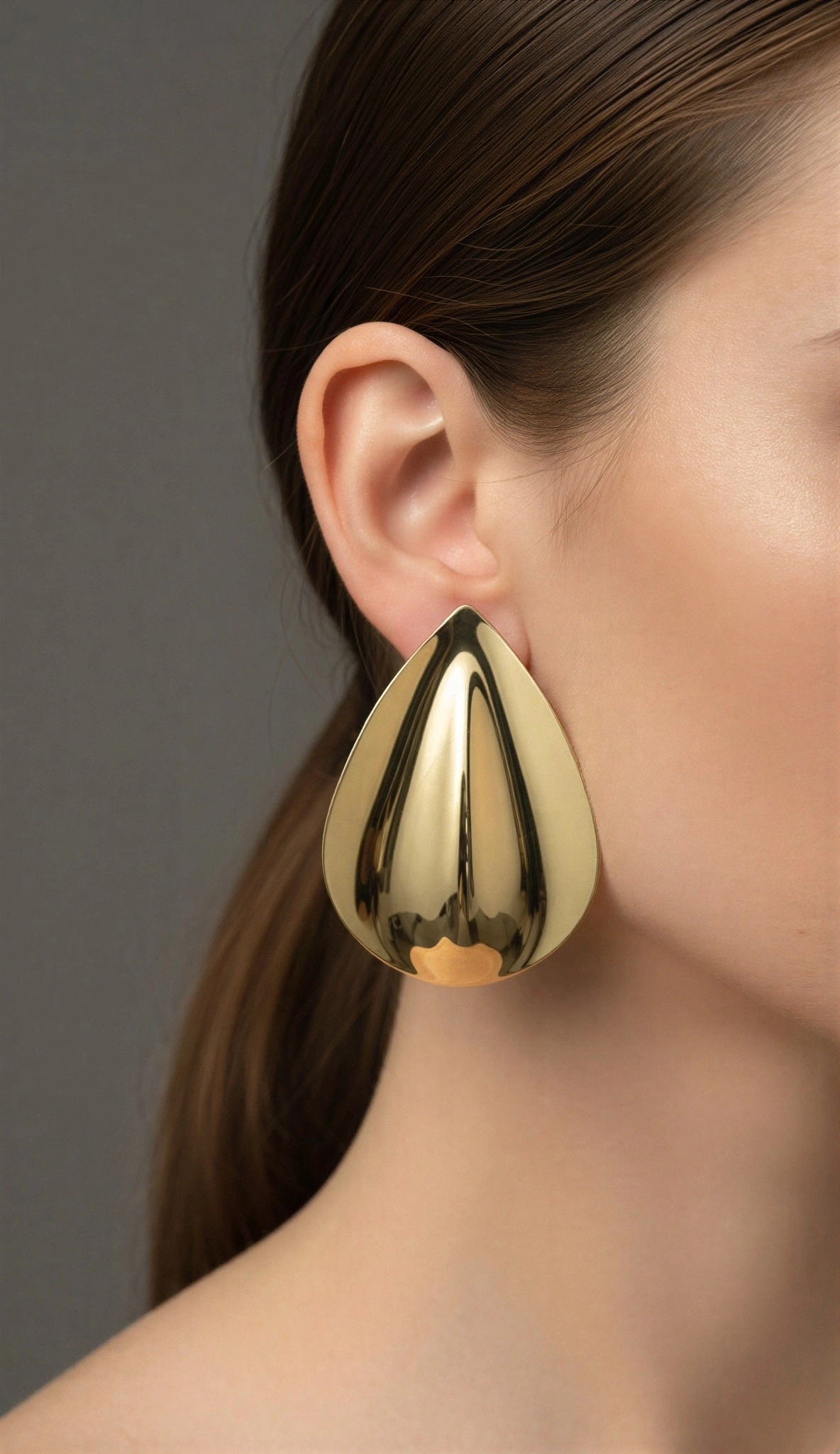 Büyük Dalga Model Gold Altın Kaplama Küpe