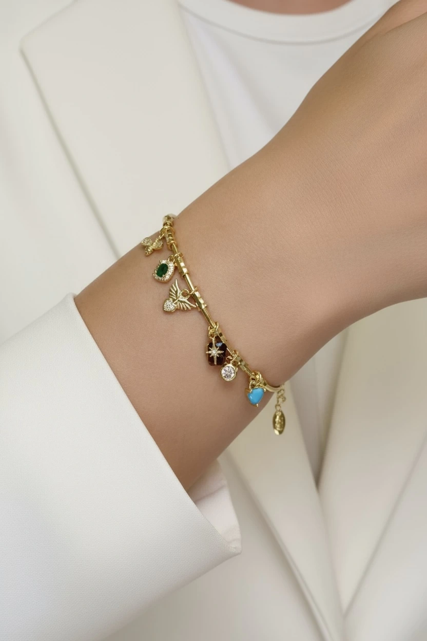 Yay Model Kuzey Yıldızı Charm Gold Altın Kaplama Bileklik