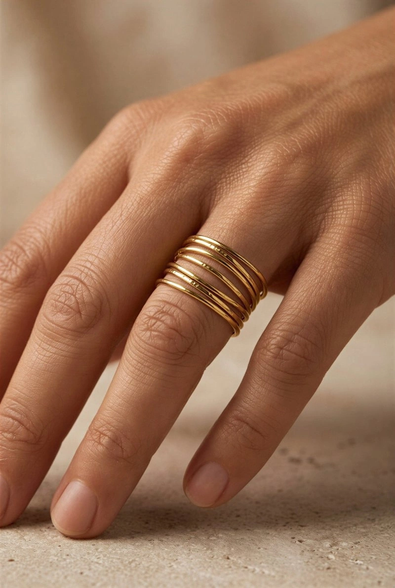 Yedi Sıralı Model Gold Altın Kaplama Ayarlanabilir Çelik Yüzük