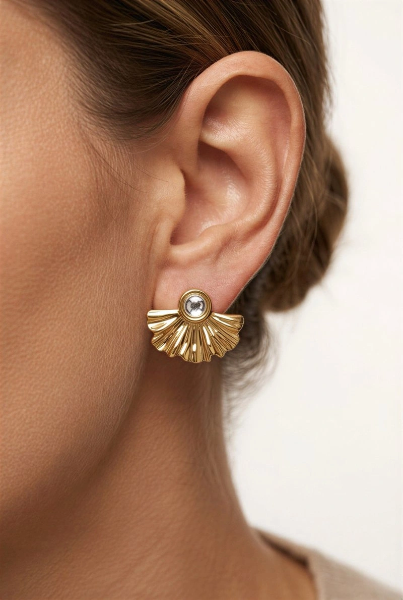 Yelpaze Model Gold Altın Kaplama Küpe