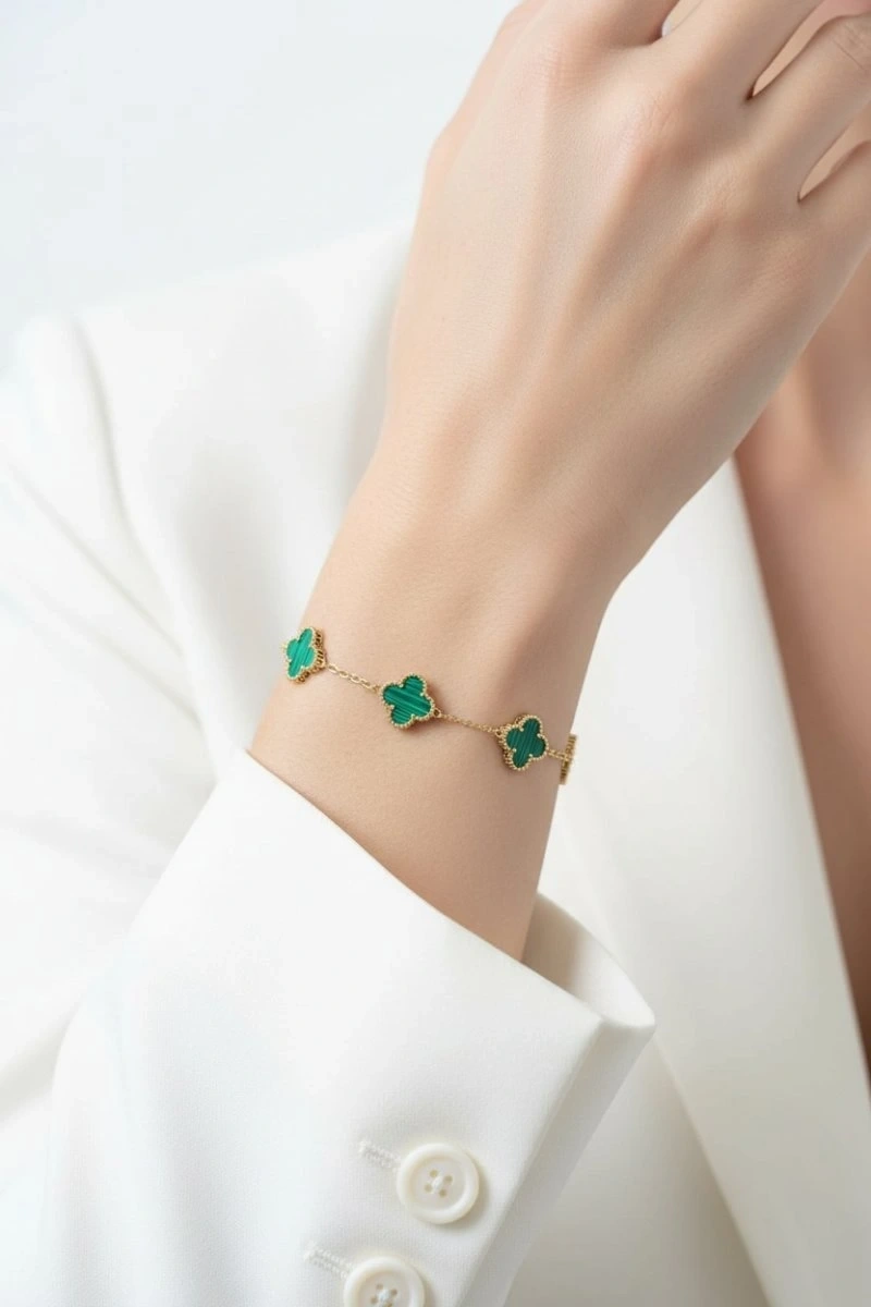 Yeşil Yonca Detay Gold Altın Kaplama Bileklik
