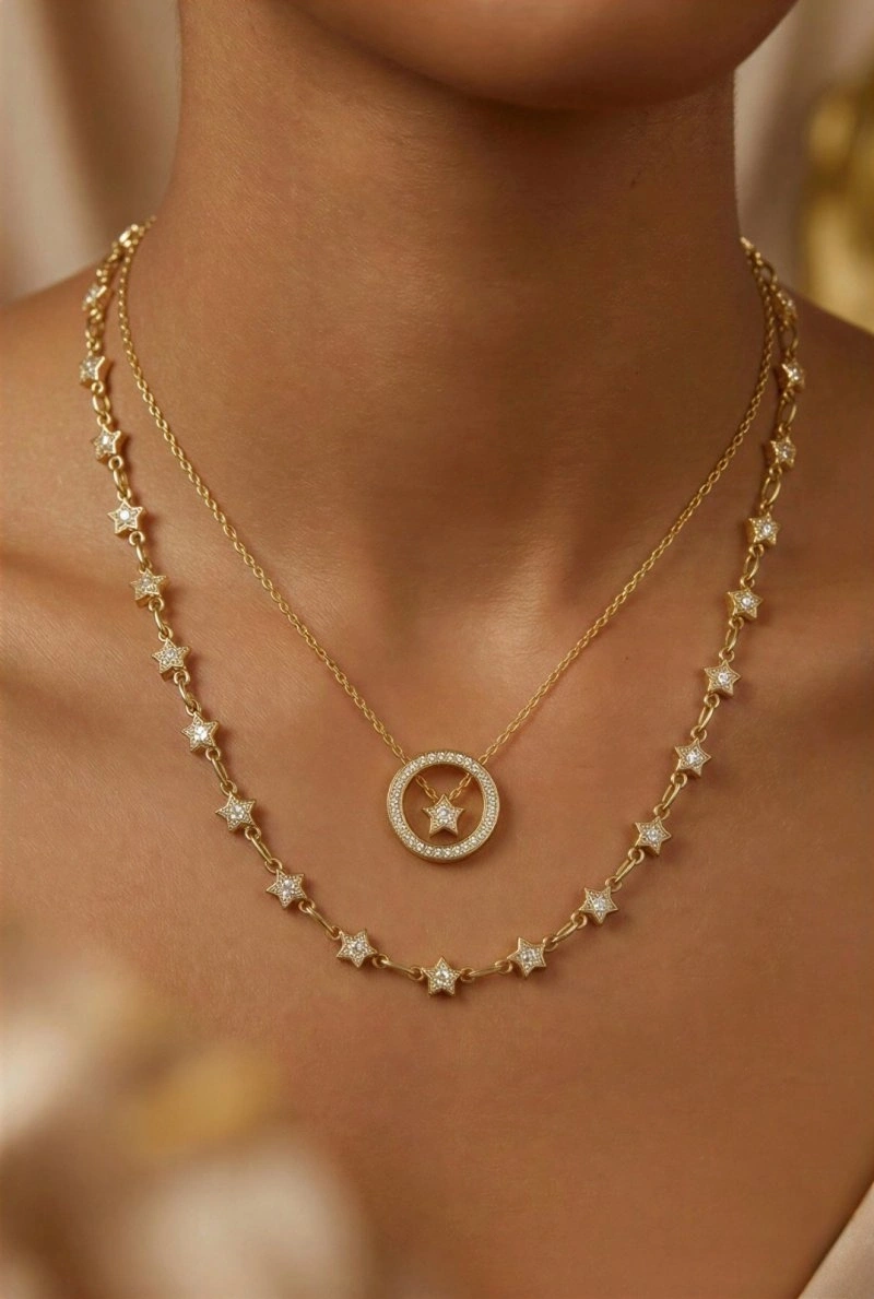 Yıldız Model Gold Altın Kaplama Kolye Kombin