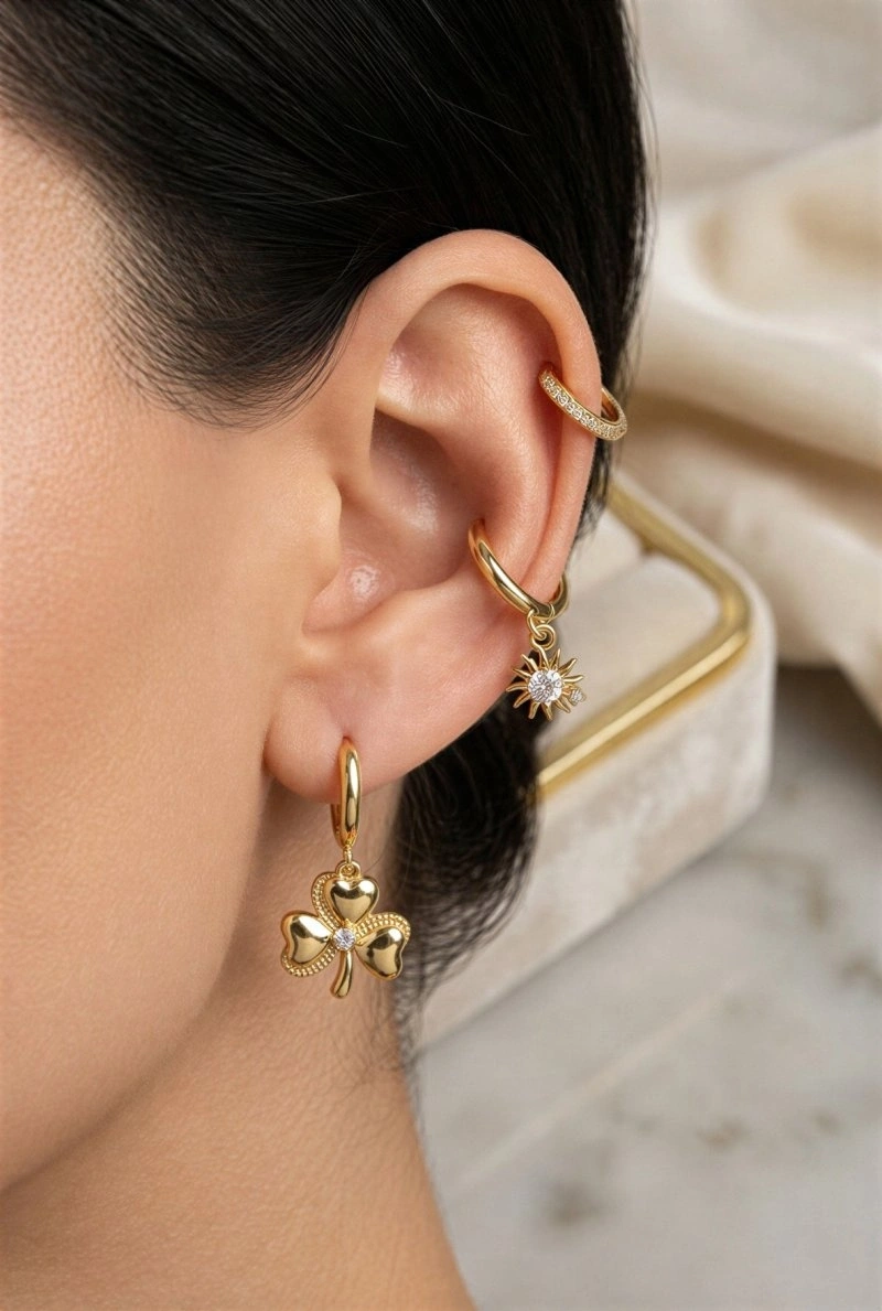Yonca Model Gold Altın Kaplama Üçlü Küpe