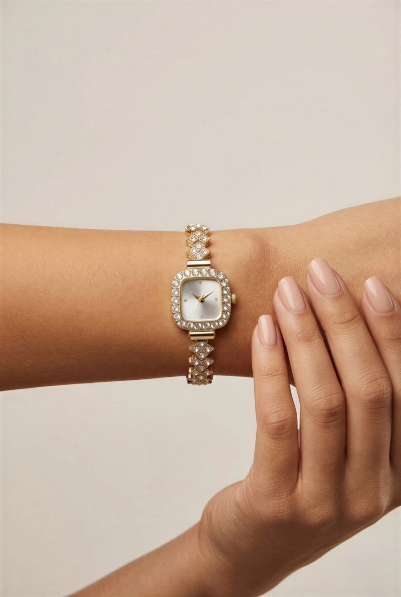Yoncalı Taş Kordon Detay Gold Metal Kadın Kol Saati