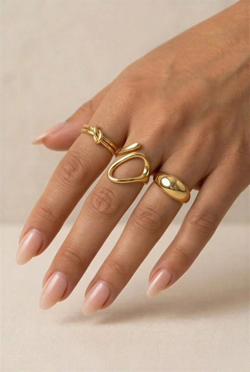 Yuvarlak Model Altın Kaplama Kombin Yüzük