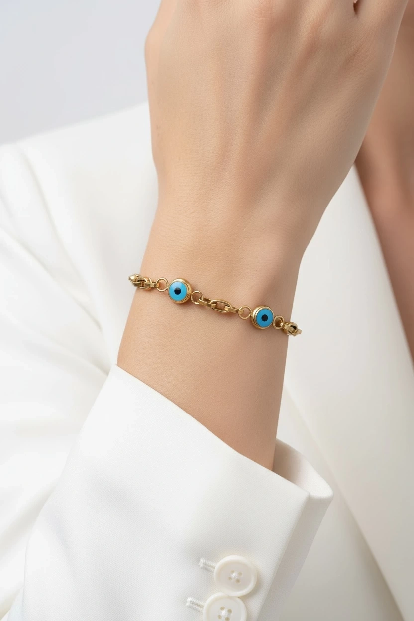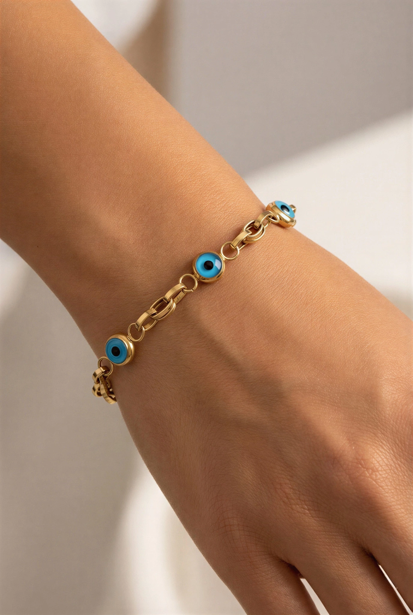 Zeus Zincir Üç Göz Model Gold Altın Kaplama Çelik Bileklik