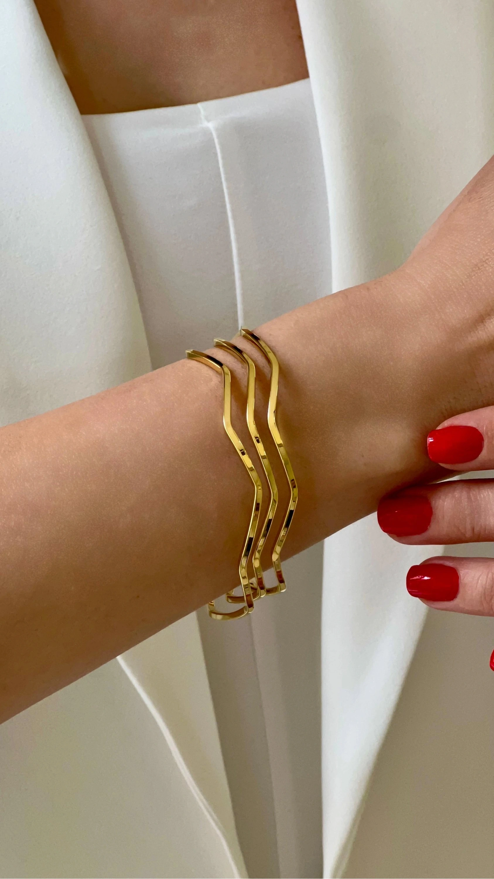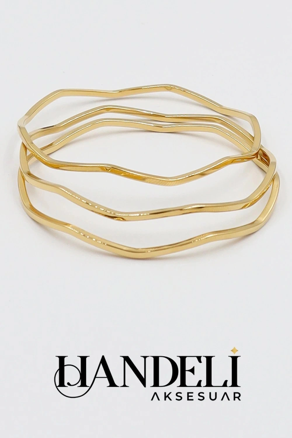 Üçlü Zikzak Ajda Model Gold Altın Kaplama Bileklik