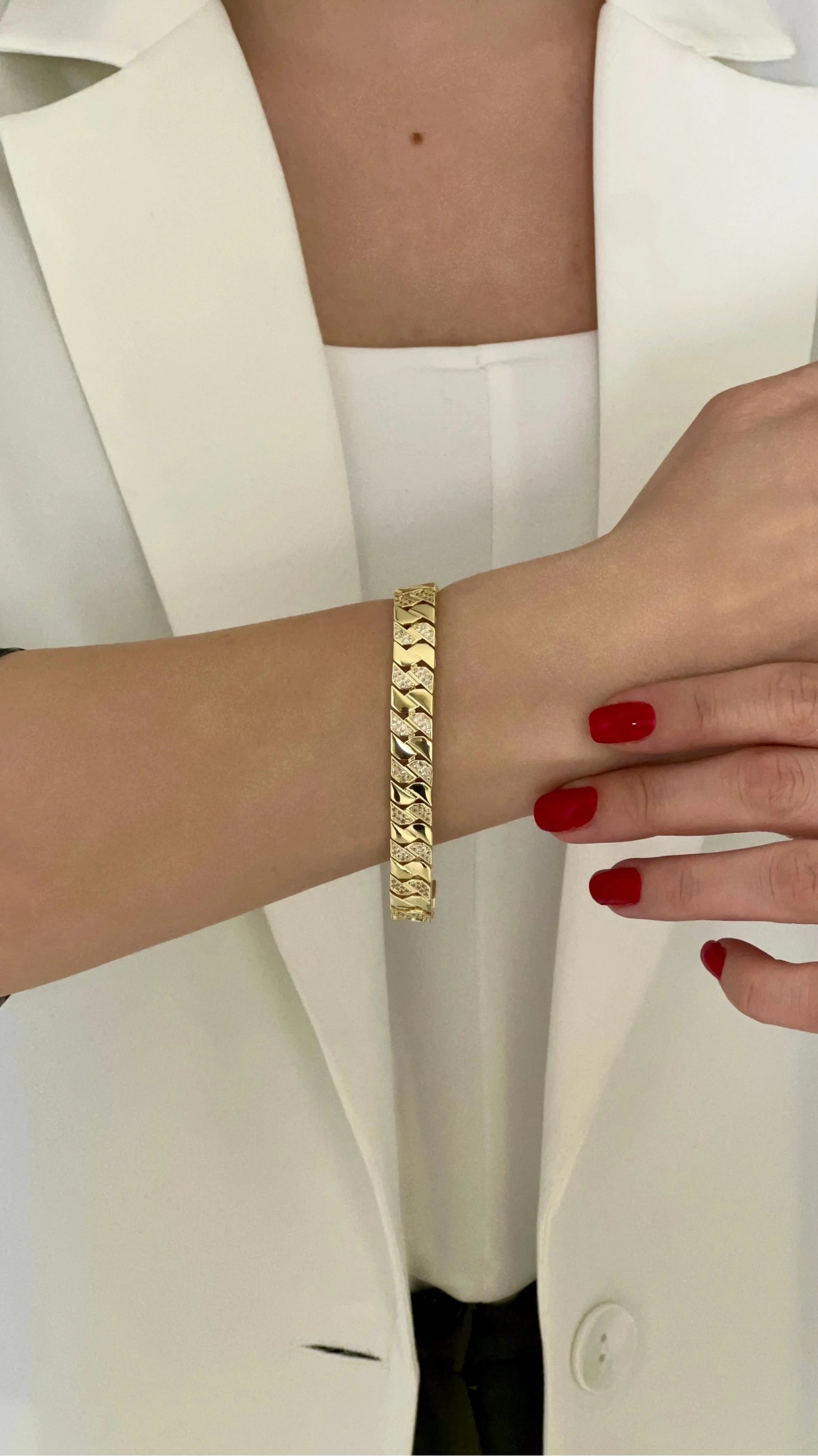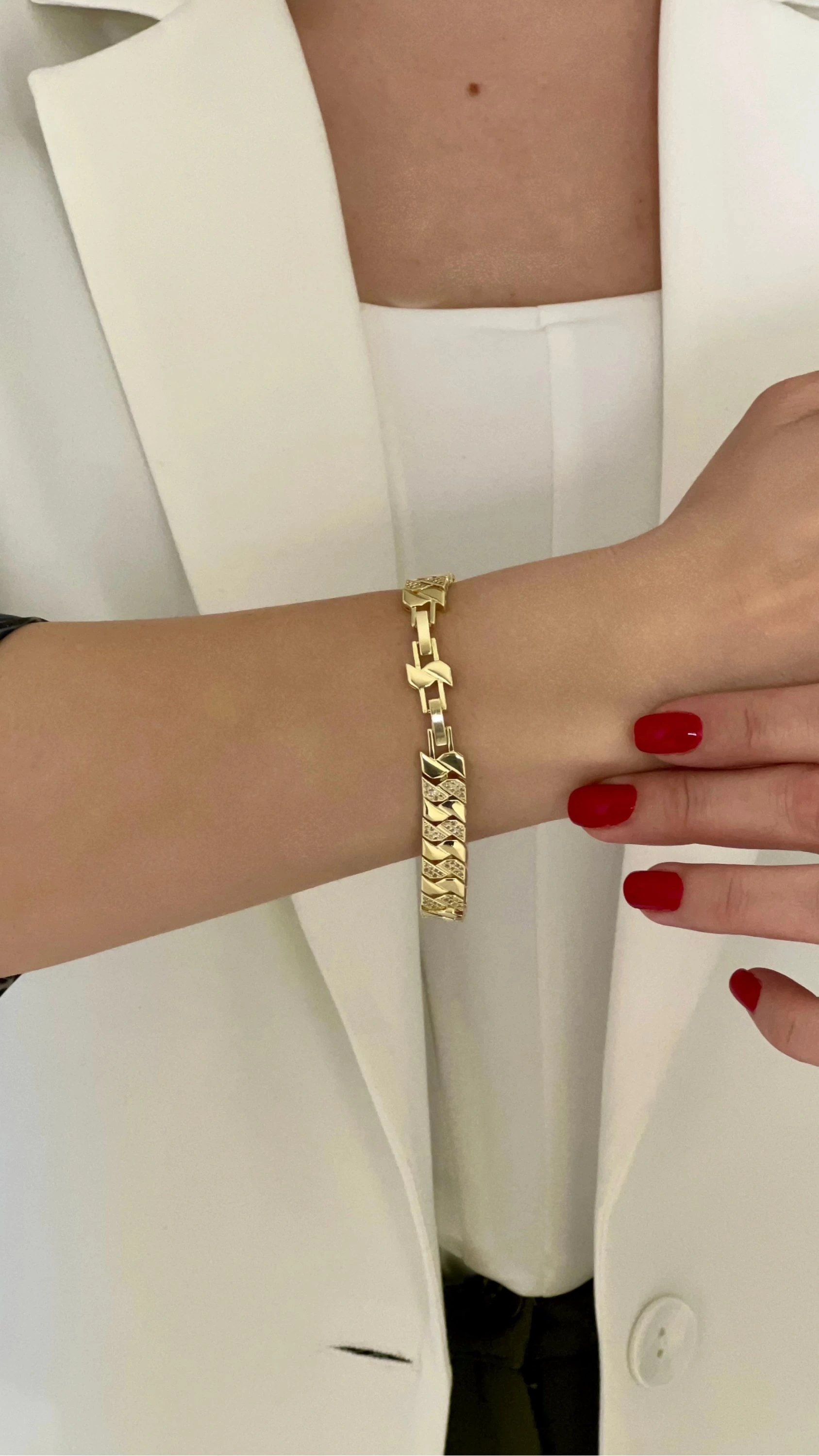Zikzak Model Taş Detay Gold Altın Kaplama Bilelik